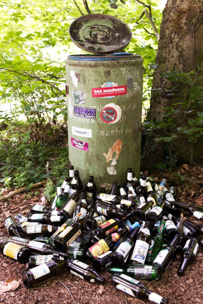 Duitsers houden van bier, braadworst en barbecueën. Vandaar dat je overal barbecueplekken tegenkomt, ook in het bos. Als service voor statiegeldverzamelaars is het bovendien gebruikelijk om statiegeldflessen naast prullenbakken achter te laten. Na drie bier vergeet je dan als snel dat statiegeldverzamelaars schaars zijn in het bos. Bierdrinkers kennelijk niet.