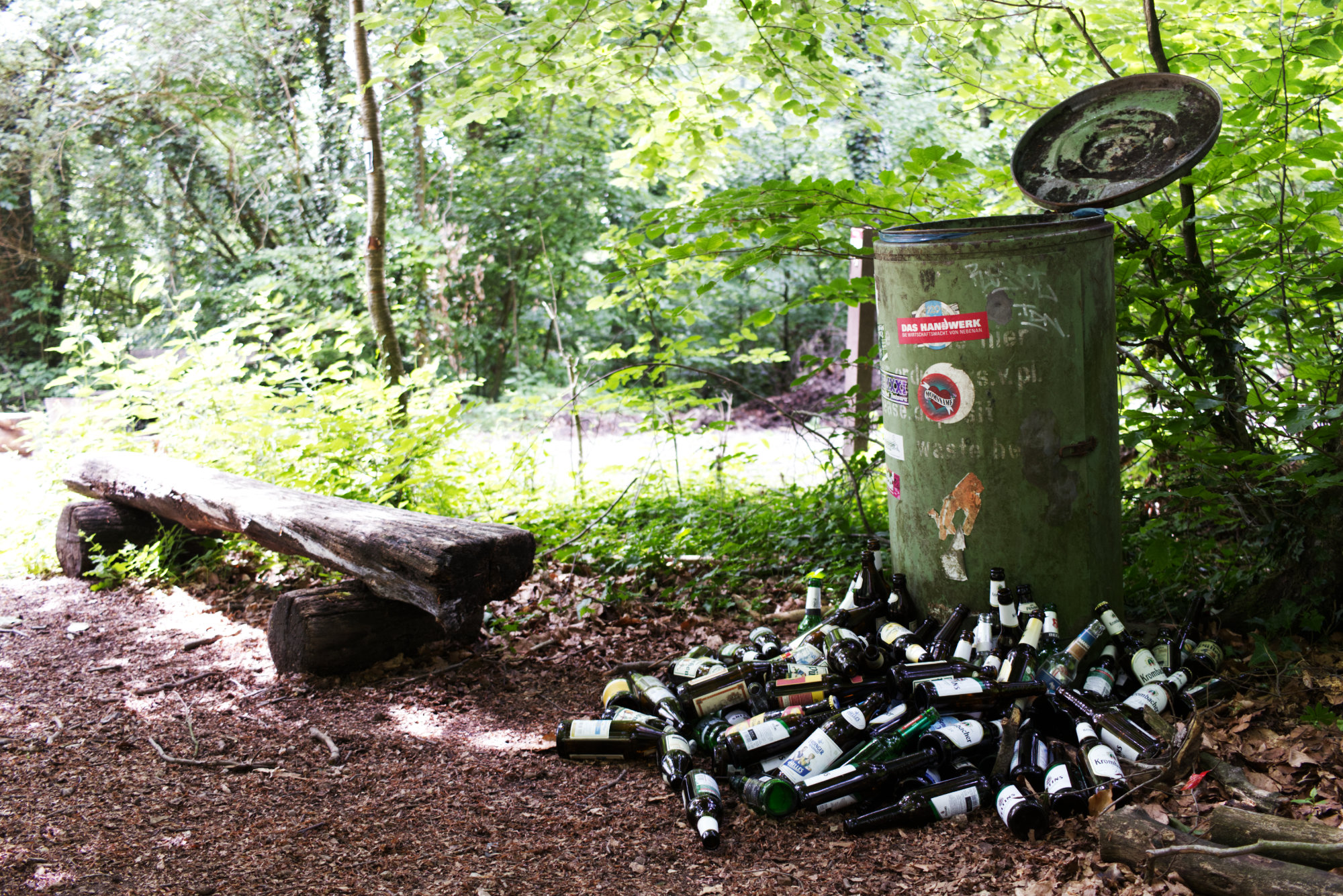 Duitsers houden van bier, braadworst en barbecueën. Vandaar dat je overal barbecueplekken tegenkomt, ook in het bos. Als service voor statiegeldverzamelaars is het bovendien gebruikelijk om statiegeldflessen naast prullenbakken achter te laten. Na drie bier vergeet je dan als snel dat statiegeldverzamelaars schaars zijn in het bos. Bierdrinkers kennelijk niet.